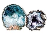 Great Fun With the Kids . I bought a few different sets of Geodes for my kids for Christmas. These were by far the best quality Geodes and they were larger than I expected them to be. Each one cracked open to reveal a large cavity with great crystals. They took some effort to open but the results were great. We used some books I bought as well as the included pamphlet to identify the type of crystals. They have added these to their rock collection. This was much more fun then just buying the already cut rock samples as they got to do this themselves.