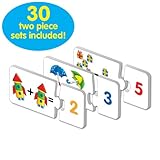 - Includes 30 self-correcting puzzle pairs: 10 card sets for counting, 10 for addition and 10 for subtraction
