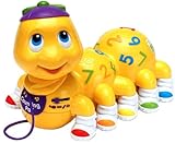 Leap Frog Counting Pal in USA - This plastic caterpillar pull-toy is designed to help toddlers and preschoolers recognize colors and numbers while learning how to count from 1 to 10. Counting Pal has 10 sneaker-clad feet, each with a color-coded number. In number mode, she'll call out the appropriate number each time a sneaker is pressed. In color mode, she'll call out the name of the color. In counting mode, children can press a numbered sneaker, and Counting Pal will count up to that number. To reinforce children's learning of the numerical sequence, Counting Pal will sing the counting song each time her string is pulled. She has a sleep mode too, which renders her silent so she can be used as a regular pull-toy. Counting Pal's voice is clear and pleasant and features a dual-mode volume control. She requires three AA batteries and has an automatic shutoff to save on battery use. --Elisabeth Fredrickson, mother of three and former English teacher