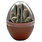 Great little cactus! . This thing is the size of an egg. It comes with seeds and a peat moss disk so you don't need any soil. You just open it up and put the seeds on the peat moss and add some water and close the clear lid, and in no time you have little baby cactii! Mine is growing fine and sitting on my desk. Easy to take care of, as it doesn't need to be watered that often. This thing is great!