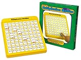 Clever multiplication teaching tool . Purchased for my 6 yr old who loves math and loves to push buttons. He has started to memorize the multiplication tables using this toy. Afraid he'll be better at math than me in no time. It's easy to read (the answers pop up in red text on the bottom side of the button when pressed), easy to use, great layout/format, quiet, requires no batteries, and is great for travel. The numbers on the buttons are on stickers (not etched or painted on), but I have not had a problem with that.