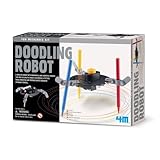 4M Doodling Robot Info - Build a robot that draws! Kids will enjoy building their own robot - and their own works of art! The Doodling Robot can doodle a picture while vibrating around, demonstrating its energetic spinning powers, creating patterns with markers in its grip. This fun kit has a motor that makes the robot shake and spin. When you remove the pens from the body, the robot slides across smooth surfaces! A great lesson in model building, basic mechanics, and basic robotics. Makes a great science fair project, too! Contains: Set of Plastic Mechanical Body Parts (assembly required), Motor with Electric Wires and Cover, Nuts and Bolts, Screws, 3 Felt-Tip Pens, Detailed Instruction Booklet. Kit requires one AA battery (not included), and a small screwdriver (not included)