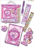 Perfect stocking stuffer for little girls who love to write . I got this as a stocking stuffer for my first grader who loves to write. She is always making up short stories about fairies and what not, and finds my journal-writing fascinating, so I thought she'd like to have a little journal of her own to get started. This cute set is perfect for young girls. I tore open the packaging as I'm just going to stuff the pieces into her stocking, and the individual pieces are really quite nice.There's a the spiral-bound pink journal with a princess carriage on the front with the word "Princess" embossed, together with the images of a princess gown, slippers, and purse. On the back, there's pictures of a chandelier, castle, and wand. The pages of the journal are in pink (not ruled). There are two sticker sheets, one featuring letters, and the other princess-related images, perfect for decorating and personalizing the journal. There's also a pen with four colors - blue,black, green, and red. Lastly there are some die-cuts which can also be used as bookmarks.