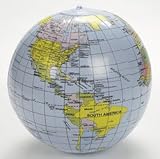 Inflatable Globe Beach Ball . Great learning devise for children and adults (seeing how roughly a third of adults can't find the USA on a world map) to learn world geography. I gave a couple to my girlfriend's kids...for about a week her kids AND her and her sisters were mesmerized with it. Then they forgot it altogether, but for the price that's still a lot. The seams didn't line up on the image or the lat and lon lines exactly, so don't plan on using this to plot a course or anything. Just good for the geographically ignorant to learn the names of different countries and their approximate location relative to the rest of the earth.