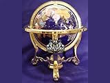 14 BLUE LAPIS GEMSTONE GLOBE with GOLD Stand Reviews - This unique gemstone globe is brand new and in perfect condition. It is painstakingly handcrafted by the most talented artists by, using more than 30 different semi-precious gemstones from all over the world! This globe have used large amount of lapis stone that pulverized, and mixed With an epoxy And Poured to make the ocean part of the globe (it is a very complicated and expensive procedure, precise control of temperature is the most essential factor in the processing cycle). This is a huge amount of striking and dramatic hand-crafted stone work. This globe is built with the beautiful ornate, heavy gold stand into which the globe has been carefully mounted. At the bottom of the stand, a precise glass-topped integral brass compass is incorporated to complement the globe. Each country is inlaid from a different stone, and the stones are individually cut and ground to exacting interlocking shapes, polished and set into this exquisite piece of art with care and attention to adjacencies. The elements of the globe are created out of lapis lazuli, mother of pearl, amethyst, African jade, tiger's eye, jasper, turquoise, purple quartz, onyx, unakite, abalone, green marble and many other beautifully hued and richly veined stones. The latitude and longitude lines are very thin ribbons of polished brass, embedded through the globe. Each globe requires ten individual steps to compose and it takes more than 1500 hours of labor to complete!